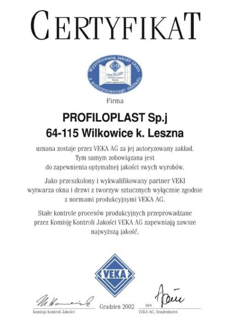 Firma działa na rynku od 1990 roku i jako jedna z pierwszych w kraju rozpoczęła produkcję stolarki okiennej i drzwiowej z profili PVC. W stosunkowo niedługim czasie firma stworzyła doskonałe wyroby, które znalazły uznanie wśród klientów i uzyskała na nie znak „Wielkopolska Jakość”. Profiloplast posiada autoryzację światowego lidera wytwarzającego profile okienne i drzwiowe firmy VEKA, co świadczy o zaufaniu partnera, a jednocześnie gwarantuje zgodną wymaganiami VEKA jakość produkcji.